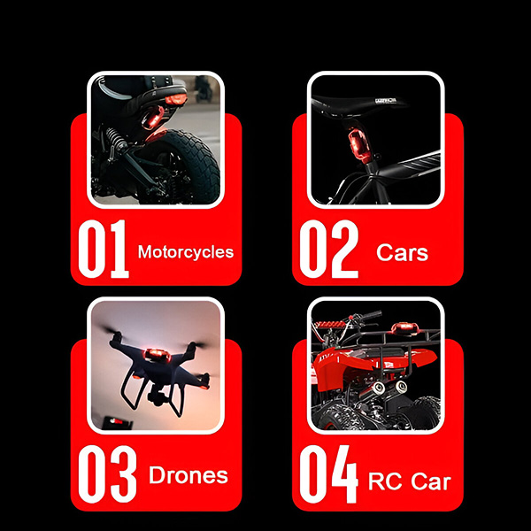 🚨 Viditeľné zo 100+ metrov – 7 RGB farieb a 3 svetelné režimy (rýchly stroboskop, pomalý stroboskop, stále svietenie) prepínateľné jedným stlačením tlačidla.