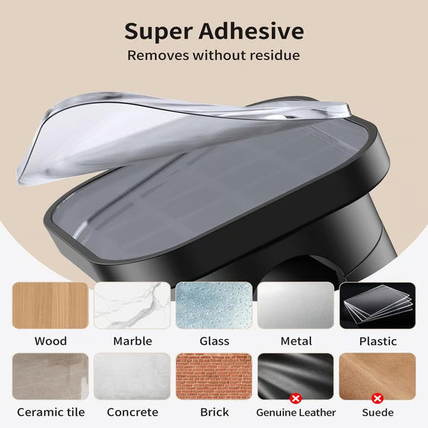 Pevne sa prichytí na rovné povrchy, ako sú drevo, dlaždice, kov a hladké steny.