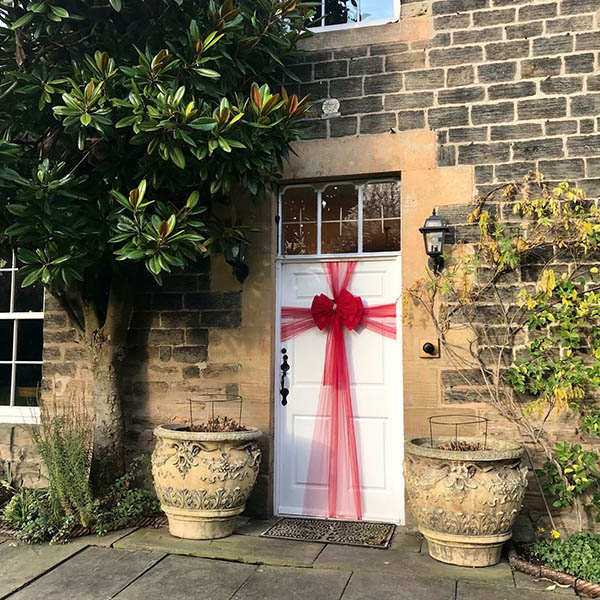 Oblečte svoje dvere do našich luxusných dekorácií s mašľami. So 750 cm dlhou stuhou môžete kreatívne dodať svojim vchodovým dverám krásnu slávnostnú úpravu. Či už ide o Vianoce, svadbu alebo detskú oslavu, RUBYBOW zvýrazní atmosféru.