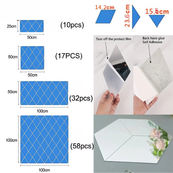 Materiál: akrylové zrkadlo s ochrannou fóliou (pred použitím odstráňte)