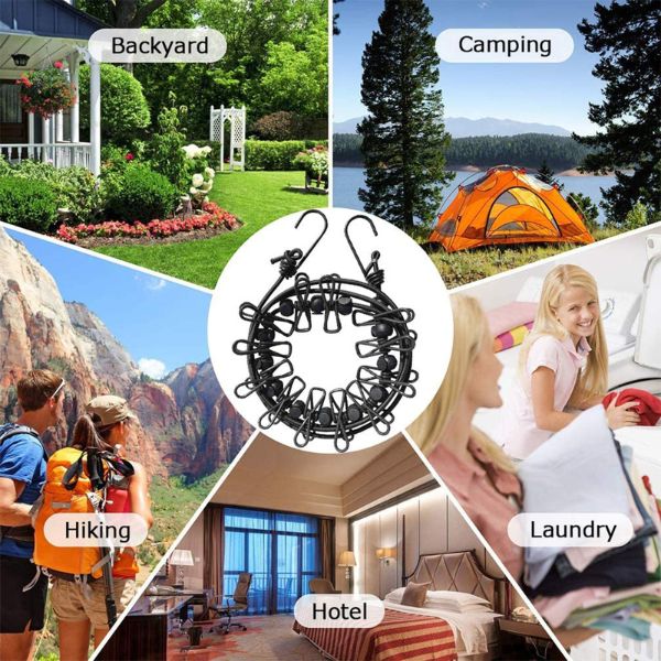 - Tento prenosný hák na bielizeň je všestranný a dá sa použiť pri rôznych príležitostiach, či už ide o kempovanie, cestovanie alebo len na vašom vlastnom dvore.